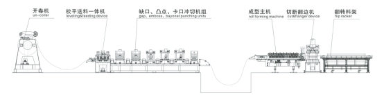開(kāi)卷—入料導(dǎo)正—較平——成型—切斷--出料