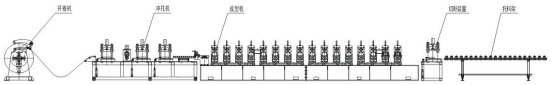 開卷機——入料導正——輥壓成型機——液壓切斷機——托料架